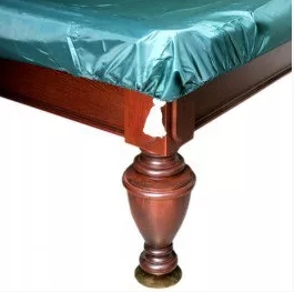 У нас вы можете приобрести специальный чехол для бильярдного стола. Данный чехол предназначен для бильярдного стола размером восемь футов, а изготовлен он из такого материала, как ПВХ. Сам материал пропитан влагостойким веществом, благодаря которому вода не попадает на стол. На лузах располагается резинка, благодаря которой чехол намного лучше сидит на столе.