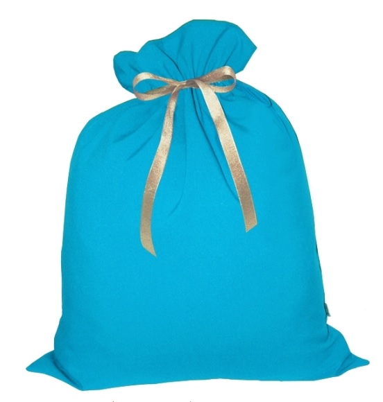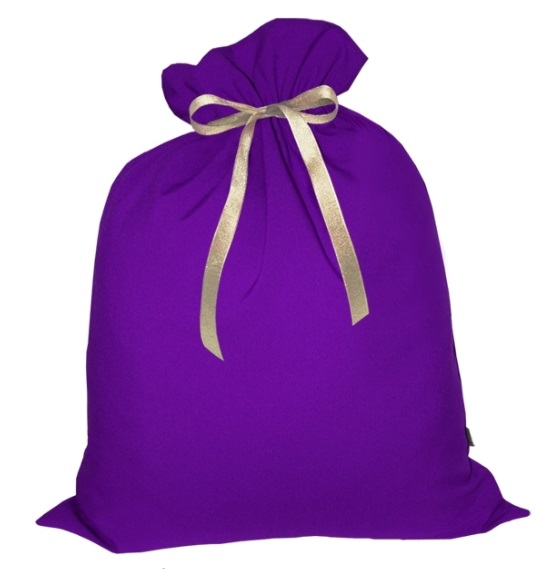 В такой огромный мешок поместится даже самый объемный подарок. Мешок сшит из хлопковой или синтетических тканей.