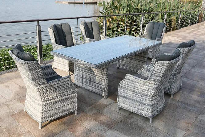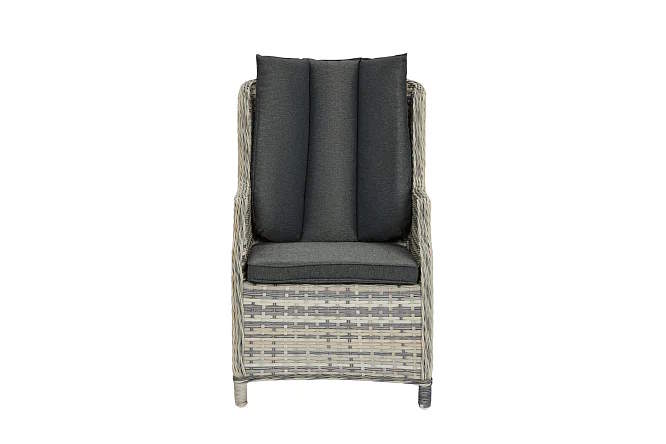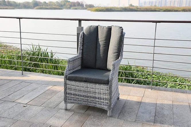 Кресло представляет собой алюминиевый каркас, оплетенный искусственным ротангом. Оба этих материала обеспечивают легкость и устойчивость кресла, его прочность, и его способность выдерживать различные погодные условия – яркое солнце, осадки, перепады температур. Размер кресла 62х94,5х77 см.
