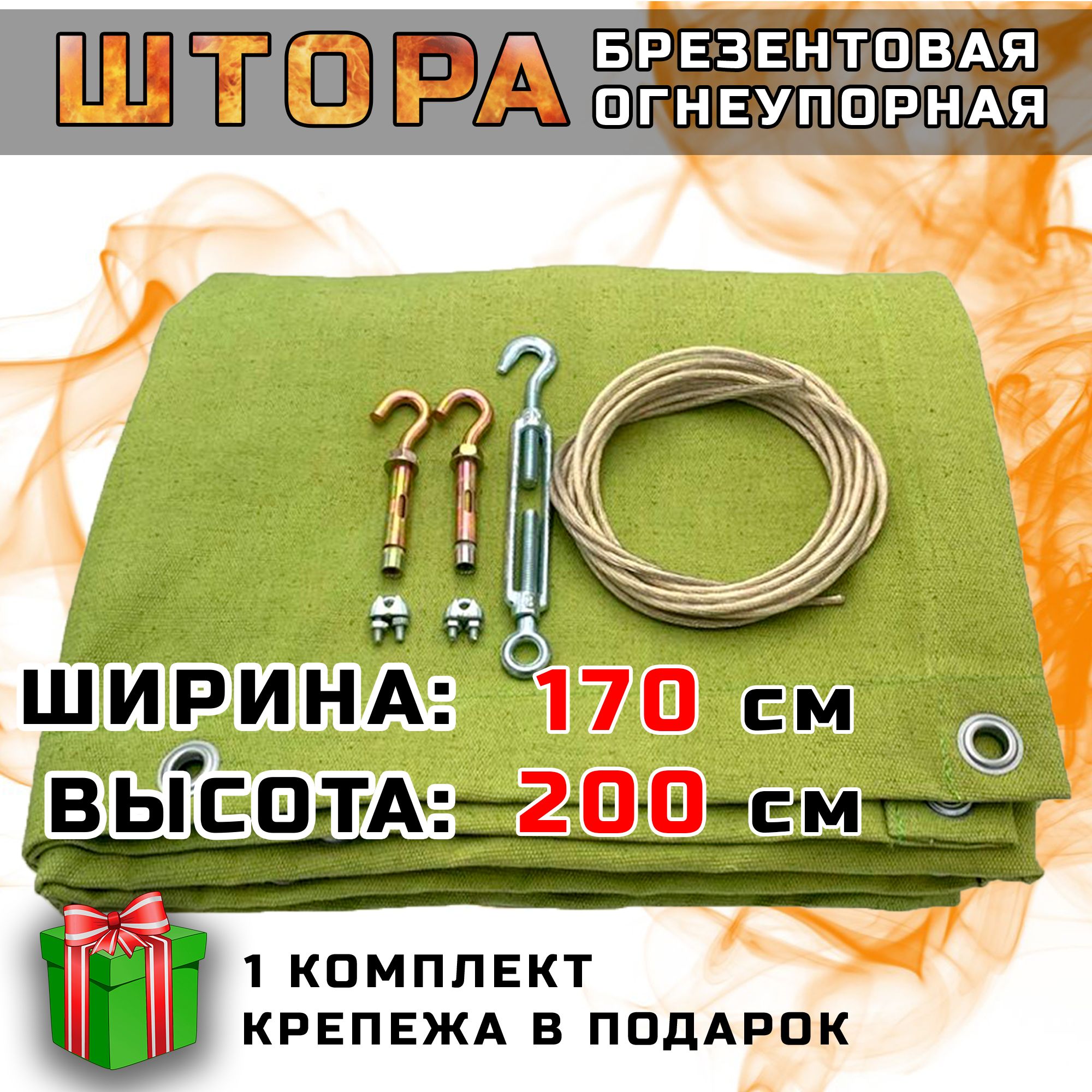 Брезентовая штора огнеупорная для гаража, усиленная 200 х170 см