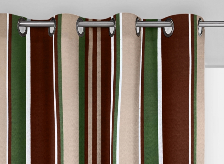 Штора уличная на люверсах 220х145 см, коричнево-зеленая полоса ткань Оксфорд 600