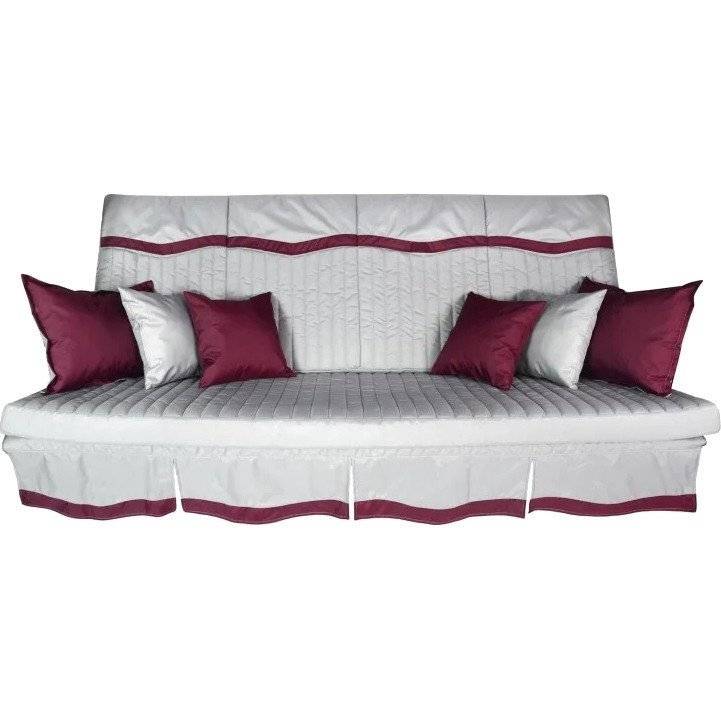 Мы предлагаем вам купить матрас для садовых качелей с высокой спинкой Филадельфия, длина такого матраса составляет 180 см, выполнен он в серо-бордовом цвете. Чехол изготовлен из ткани, которая отталкивает воду, пыль и грязь, а в качестве наполнителя используется холлофайбер, это современный гипоаллергенный материал с плотностью 1200 г. В комплекте находится шесть подушек, а размеры матраса составляют: глубина сиденья 60 см, высота спинки 70 см, длина матраса 180 см, толщина составляет 9 см.
