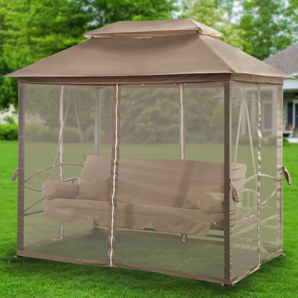 У нас вы можете приобрести тент, предназначенный для садовых трёхместных качелей с двойной крышей Green Days, тент двойной, он проветривается. Предназначен данный тент для качелей, размер которых составляет 252 х 170 х 245 см. Данный тент выполнен в бежевом цвете, благодаря данному тенту вы будете надёжно защищены от осадков и солнечных лучей.